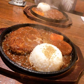 ハンバーグはグツグツのアツアツでお肉の味がすごーく感じられてとっても美味しかったです!