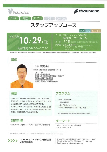 来る10月29日(日)、ストローマン・ジャパン株式会社主催の歯科医師向けのセミナーを東京にて開催いたします。インプラントをより極めたい方ぜひご参加ください。