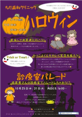ちだ歯科クリニックでもハロウィンイベントを行っています!
