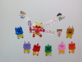 遊びに来たお子さん達は鬼に豆を貼り付けて「おには〜そと、ふくは〜うち」ととても楽しそうに遊んでいますよ(●´ω`●)