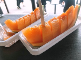 メロンが人気なようだったので、メロンと焼きたてのメロンパンを食べました!