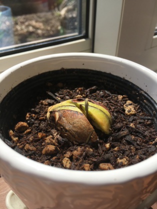 あと、12月のクリスマスの時にアボカドを食べたのですが、その種が4カ月の時を越えて最近発芽しました!