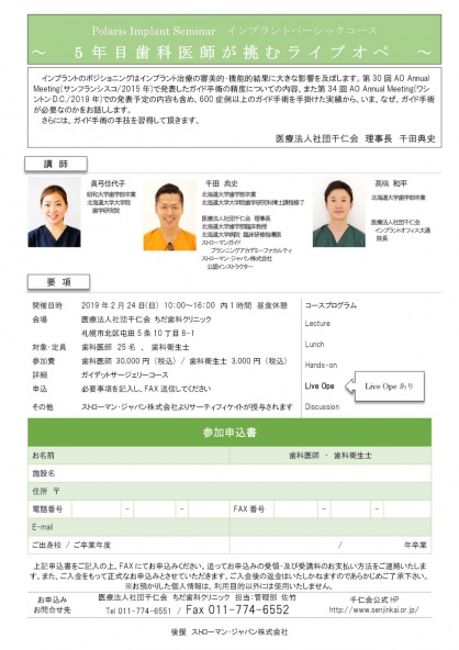 歯科医療関係者対象インプラントライブオペ研修会を開催いたします ◇ 札幌のインプラント 千仁会