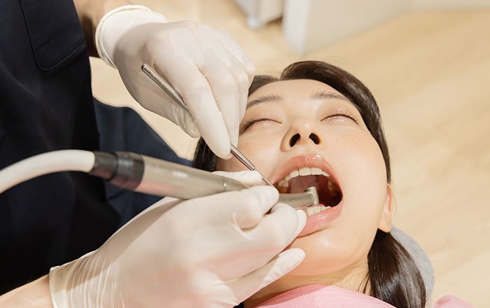 咬合調整は、普通の歯だけでなく、インプラント、被せ物や詰め物、入れ歯などの噛み合わせの強いところを削ったり、調整したりし、歯並び全体の噛み合わせのバランスを整える処置です。